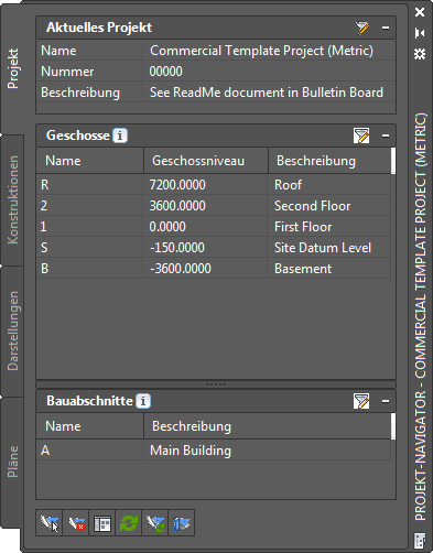Das Vorlagenprojekt für Geschäftsgebäude enthält fünf einfache Geschosse, damit Sie mit der Arbeit beginnen können.