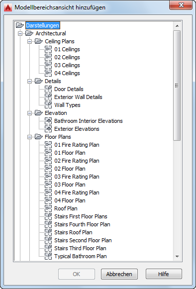 - Wählen Sie die Projektansichtszeichnung, in der die Modellbereichsansicht platziert werden soll, und klicken Sie auf OK.