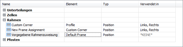 Gehen Sie wie folgt vor, um einer Tür-Fenster-Kombination eine Rahmenzuweisung hinzuzufügen. Um verschiedenen Rahmenkanten verschiedene Definitionen zuzuweisen, benötigen Sie mehrere Rahmenzuweisungen.