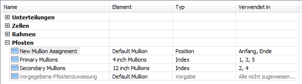 Gehen Sie wie folgt vor, um eine neue Pfostenzuweisung einem Fassadenelementstil hinzuzufügen.