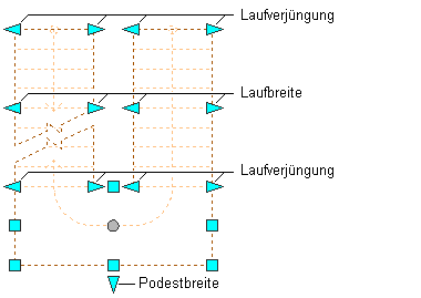 (Kante) Ermöglicht das Ändern der Podestbreite einer U-förmigen Treppe durch Verschieben einer Kante.