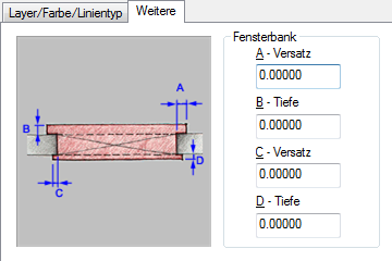 - Geben Sie unter Fensterbank Werte für Versatz und Tiefe ein.