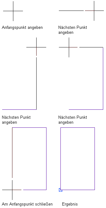 | Schließen des Umfangs durch Hinzufügen einer Kante, die vom vorherigen Punkt zum Startpunkt der Basislinie verläuft | Geben Sie S (für Schließen) ein. |