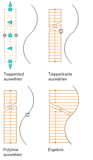 Projizieren von Treppenkanten auf eine gebogene Polylinie