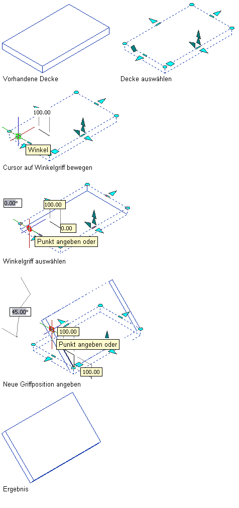 Bearbeiten der Deckenneigung mithilfe des Griffs für den Winkel