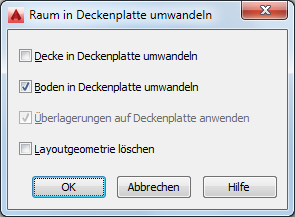 6. Wenn die Überlagerungen von einigen der ausgewählten Räumen ignoriert werden sollen, deaktivieren Sie die Option Überlagerungen auf Deckenplatte anwenden.