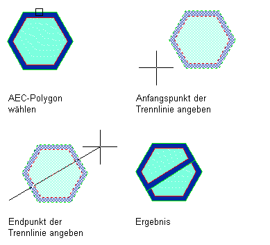 Das AEC-Polygon wird durch die von Ihnen definierte Linie geteilt.