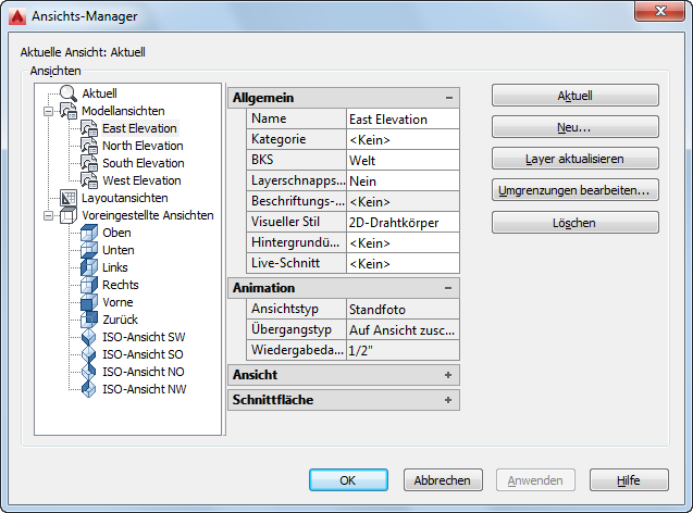 Im Ansichts-Manager wird die erstellte Modellbereichsansicht unter Ansichten aufgelistet.