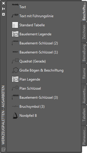Die Beschriftungswerkzeuge werden auf der Registerkarte Beschriftung der Werkzeugpalette Ausarbeiten angezeigt: