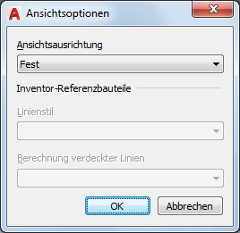 Dieses Dialogfeld gibt an, wie die Ansichtsgeometrie verankert wird und wie die Inventor-Referenzbauteile angezeigt werden.