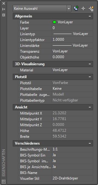 - Wenn keine Objekte ausgewählt sind, können Sie die aktuellen Eigenschaften anzeigen und so ändern, dass sie für alle neuen Objekte verwendet werden.