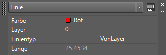 Wenn keine Objekte ausgewählt sind, werden in den oben markierten Dropdown-Listen die aktuellen Einstellungen für die Zeichnung hervorgehoben. Wenn Sie ein Objekt auswählen, werden in den Dropdown-Listen die Eigenschaftseinstellungen für dieses Objekt angezeigt.