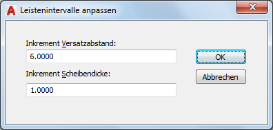 Beispiel: Wenn Sie den Wert für Inkrement Versatzabstand auf 6.0000 festlegen und im Steuerelement Schnittsversatz einmal auf den Aufwärtspfeil klicken, wird der Schnittsversatzwert um 6.0000 Punkte erhöht.