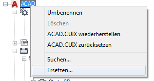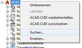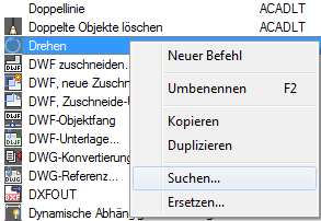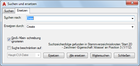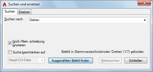 Es wird eine Meldung angezeigt, in der die Position des Befehls, seine genaue Position im Bereich Anpassungen in oder im Bereich Eigenschaften sowie die Anzahl der Vorkommen des Befehls angegeben wird.