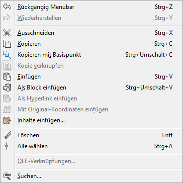 Die Art und Weise, mit der ein Menüelement angezeigt wird, gibt seine Verfügbarkeit im Programm an.