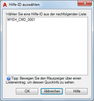 Nachfolgend sehen Sie ein Beispiel für eine erweiterte QuickInfo, die für ein AutoCAD 2009-basiertes Produkt erstellt wurde. Sie müssen den fett und kursiv angezeigten Text ändern.