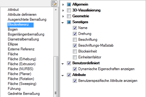 Steuern der Anzeige von benutzerdefinierten Eigenschaften und Attributen für Blockreferenzen