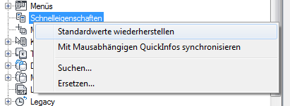 - Klicken Sie auf Einstellungen für mausabhängig angezeigte QuickInfos auf Schnelleigenschaftenpalette anwenden.