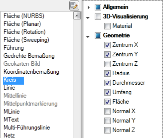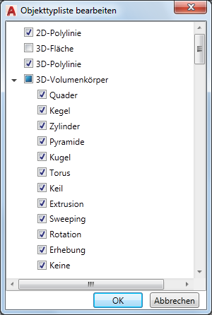- Klicken Sie im Dialogfeld Objekttypliste auf den Objekttyp, für den Eigenschaften in der Schnelleigenschaftenpalette angezeigt werden sollen.