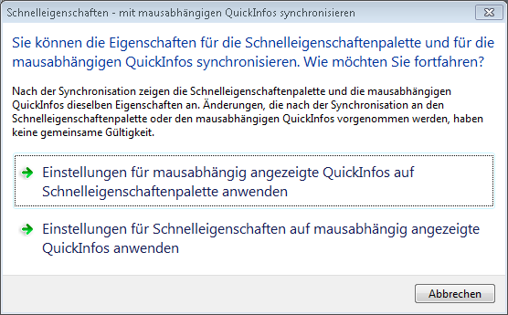 Synchronisieren der Schnelleigenschaften mit mausabhängigen QuickInfos