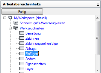 - Klicken Sie im Bereich Arbeitsbereichsinhalte auf das Pluszeichen (+) neben dem Knoten Werkzeugkästen, um ihn zu erweitern.