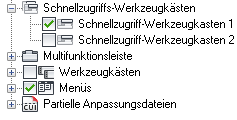 - Klicken Sie im Bereich Anpassungen in <Dateiname> auf das Pluszeichen (+) neben dem Knoten Schnellzugriffs-Werkzeugkästen, um ihn zu erweitern.