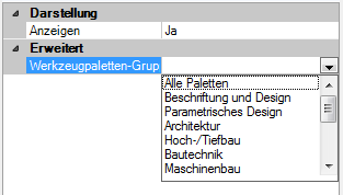 - Wählen Sie im Feld Werkzeugpaletten-Gruppe eine der aufgeführten Werkzeugpalettengruppen aus, um sie der Multifunktionsleisten-Registerkarte zuzuordnen.