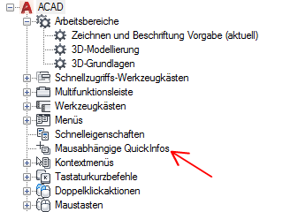 Wenn eine Eigenschaft ausgewählt ist, wird die Eigenschaft in einer mausabhängigen QuickInfo angezeigt, sobald der Mauszeiger über ein Objekt des ausgewählten Objekttyps im Zeichnungsfenster geführt wird. Heben Sie die Auswahl einer Eigenschaft auf, wenn diese Eigenschaft nicht für den ausgewählten Objekttyp angezeigt werden soll.
