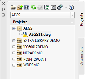 Im Projekt-Manager werden die Dateien unter dem Ordner AEGS aufgelistet. Neue Zeichnungen, die Sie ab jetzt hinzufügen, werden an das Ende der Zeichnungsreihenfolge angehängt. Sie können nun auf die Zeichnungen zugreifen, die Sie für die Übungen in diesem Handbuch benötigen.