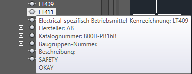 Die verschiedenen Gerätetypen werden in der Betriebsmittelstruktur unterschiedlich dargestellt. Beim Einfügen von elektrischen Betriebsmitteln wird empfohlen, eindeutige Namen (Anlagenbezeichnung, Ortsbezeichnung und Betriebsmittelkennzeichnung), Anschlüsse und Klemmennummern zu verwenden. Wenn Sie beispielsweise Kabelbezeichnungen in einer Zeichnung verwenden, die doppelte Werte für die Kabelkennzeichnung enthält, kann es in der Betriebsmittel-Strukturansicht und auf der Registerkarte Verbindungen zu unerwartetem Verhalten des Betriebsmittels kommen. Dies tritt häufiger bei Klemmen und Kabelbezeichnungen in der Ortsansicht auf.