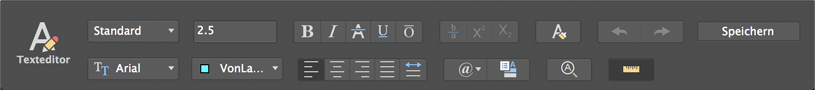 - Aktiviert bzw. deaktiviert das Durchstreichen für neuen oder ausgewählten Text