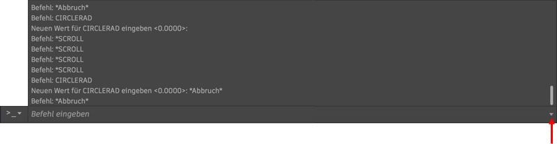 Sie können das erweiterte Befehlsprotokoll auch anzeigen, ohne ein eigenes Fenster zu öffnen. Drücken Sie F2 oder verwenden Sie das Steuerelement am rechten Ende der Befehlszeile, zum Anzeigen des erweiterten Befehlsprotokolls.