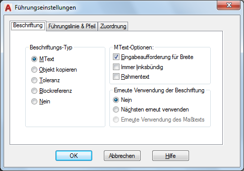 Optionen für die Wiederverwendung von Führungsmaßtext.