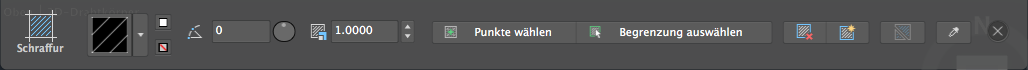 Wenn in einer Zeichnung mehrere Schraffuren oder Füllungen unterschiedlichen Typs ausgewählt wurden, sind einige der Steuerelemente in der Schraffurleiste deaktiviert.