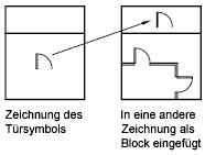 Ein Block ist im Wesentlichen eine Blockdefinition, die den Blocknamen, die Blockgeometrie, die Position des Basispunkts zum Ausrichten des Blocks beim Einfügen und alle zugehörigen Attributdaten umfasst. Sie können im Dialogfeld Blockdefinition oder mit dem Blockeditor einen Block anhand der Zeichnungsgeometrie definieren. Sobald die Blockdefinition erstellt wurde, können Sie sie in der gleichen oder einer anderen Zeichnung referenzieren.