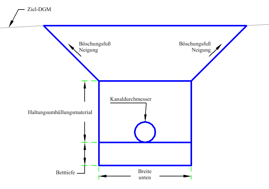 In der Entwurfsdarstellung zeichnet dieser Querschnittsbestandteil einen Graben.