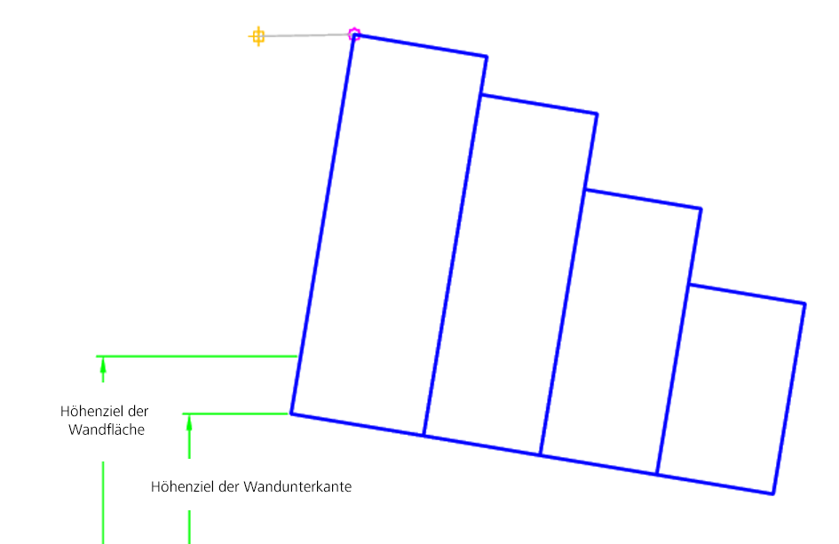 | Fläche der Wand | Kann verwendet werden, um den Höhenpunkt der Wandfläche festzulegen. Folgende Objekttypen können beim Festlegen der Höhe als Ziele verwendet werden: Längsschnitte, 3D-Polylinien, Elementkanten oder Vermessungslinienzüge. | Optional (Zuordnungspunkt = Wandoberkante) |