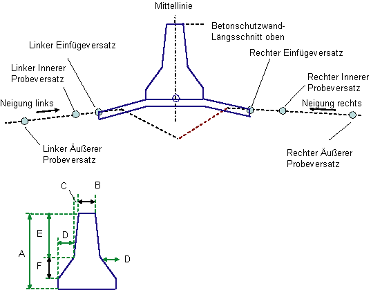 Höhe der Betonschutzwand von der Basis der hohen Seite des Mittelstreifens zur Oberkante der Schutzwand |