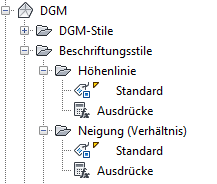Klicken Sie auf das Feld +/-, um die Sammlung zu erweitern und die Beschriftungsstile für das Objekt anzuzeigen. Einige Objekte verfügen über mehrere Beschriftungsstilebenen.