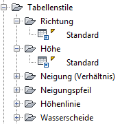Klicken Sie auf das Feld +/-, um die Sammlung zu erweitern und die Tabellenstile für das Objekt anzuzeigen. Einige Objekte verfügen über mehrere Tabellenstilebenen.