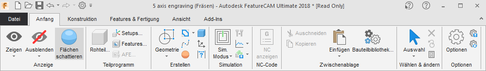 Anstatt von Symbolleisten und Menüoptionen weist FeatureCAM nun ein Menüband auf, das ein klares visuelles Layout bietet und Übereinstimmung mit anderen Autodesk Produkten gewährleistet.