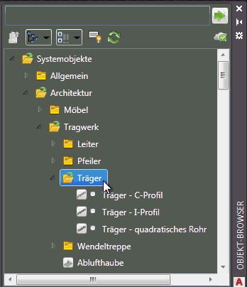 - Wählen Sie einen beliebigen Ordner aus dem Objekt-Browser in AutoCAD aus.