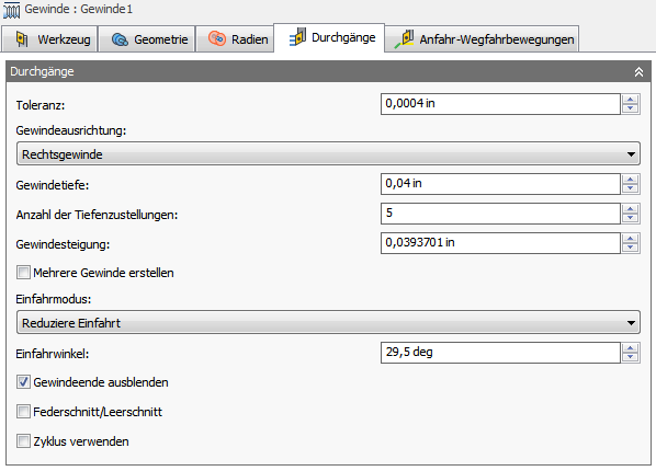 Aktivieren Sie diese Option, um das Gewinde unmittelbar vor Erreichen des Endes des Schnitts allmählich vom Bauteil abzuheben.