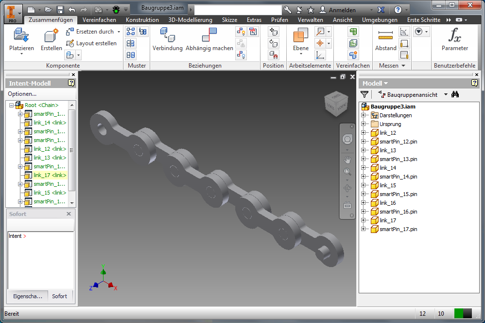 Beim Hinzufügen von Kettengliedern werden diese automatisch verbunden und wechseln die Seiten: