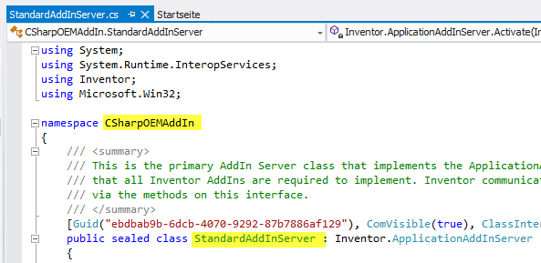 - ClassId und ClientId: Beide haben denselben Wert, nämlich die GUID ganz oben in der Klasse StandardAddInServer.