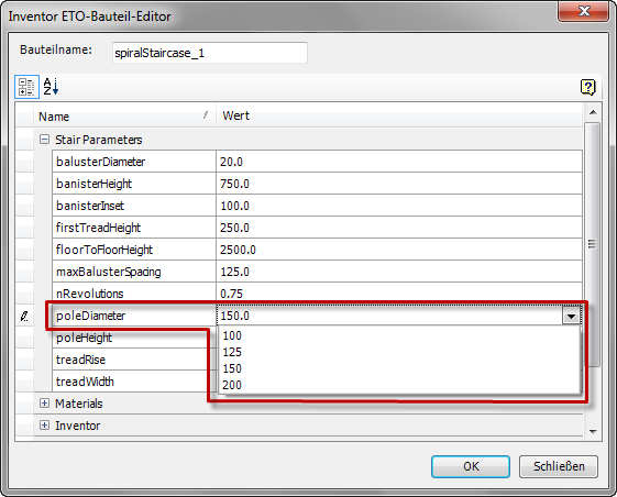 Legt Bauteilparameterwerte fest und zeigt sie an, bevor Sie das Bauteil der Intent-Baugruppe hinzufügen.