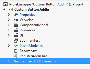 Die Methode CreateButtonDefinition ruft einen Konstruktor in der Klasse ButtonDefinitionWrapper auf, um die Schaltfläche zu erstellen. Der Konstruktor registriert die Ressourcen, die zum Anzeigen der Schaltfläche erforderlich sind.