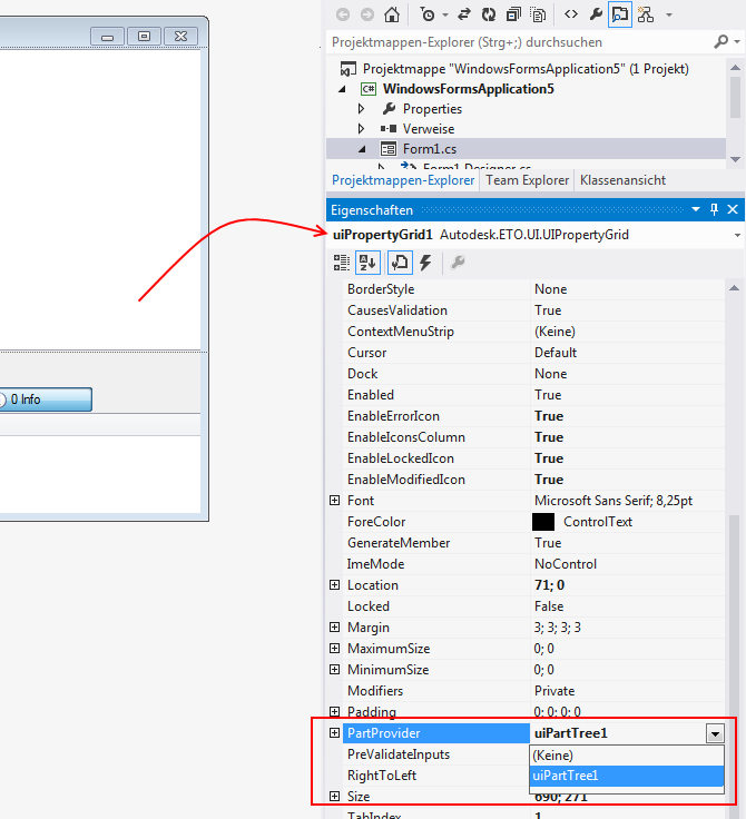 Legen Sie den PartProvider für das UIPartTree-Steuerelement im Code auf das UIProject-Steuerelement fest: