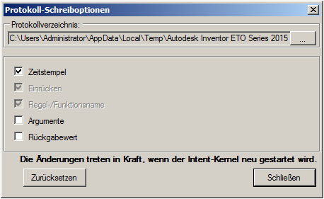 Protokoll-Schreiboptionen steuern den Umfang der in die Protokolldatei geschriebenen Daten.