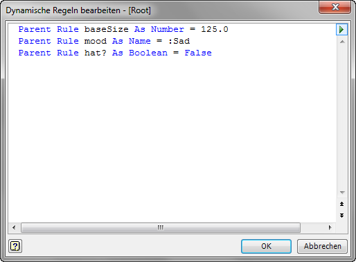 Sie können den Code der dynamischen Regeln eines bestimmten Intent-Bauteilknotens im Modell-Browser von Intent bearbeiten.